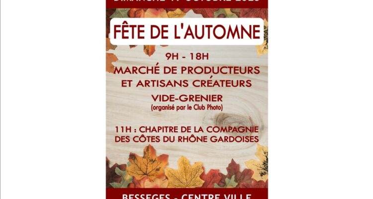 de 9h à 18h : Marché de producteurs et créateurs, vide-grenier (organisé par le Club photo), animations foraines au parking de la Cèze